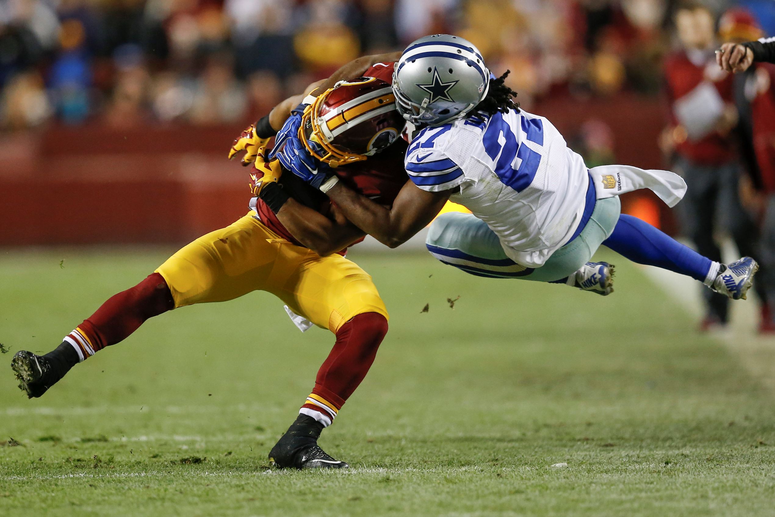 Dallas needed only two plays to cash in, jumping in front on McFadden's 6-yard touchdown run. A 41-yard kickoff return plus a 15-yard facemask penalty on J.J. Wilcox set the Redskins up at Dallas' 43, and four plays later, Jackson hauled in a perfect pass from Cousins to pull even with 44 seconds to go.